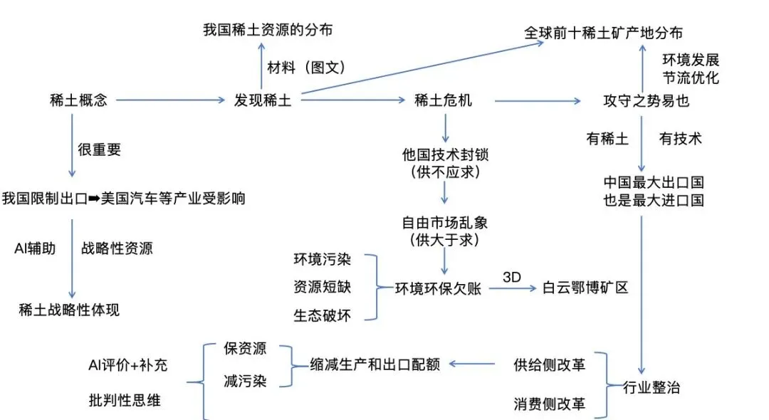 2.关于AI生成全球前十稀土矿产地的分布图,或许可以简要向学生演示或说明指令输入的过程,甚至提供机会让学生尝试描述指令。