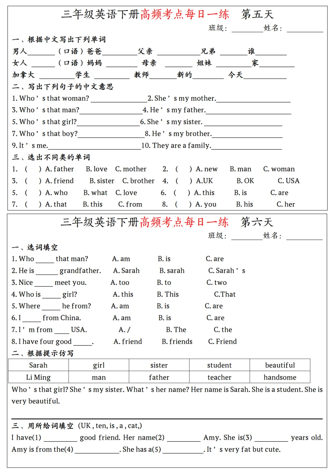 暑假即将到来,今天安安妈给大家分享一套小学英语高频考点每日一练,人教PEP 3-6年级下册,非常适合假期用来复习巩固知识。