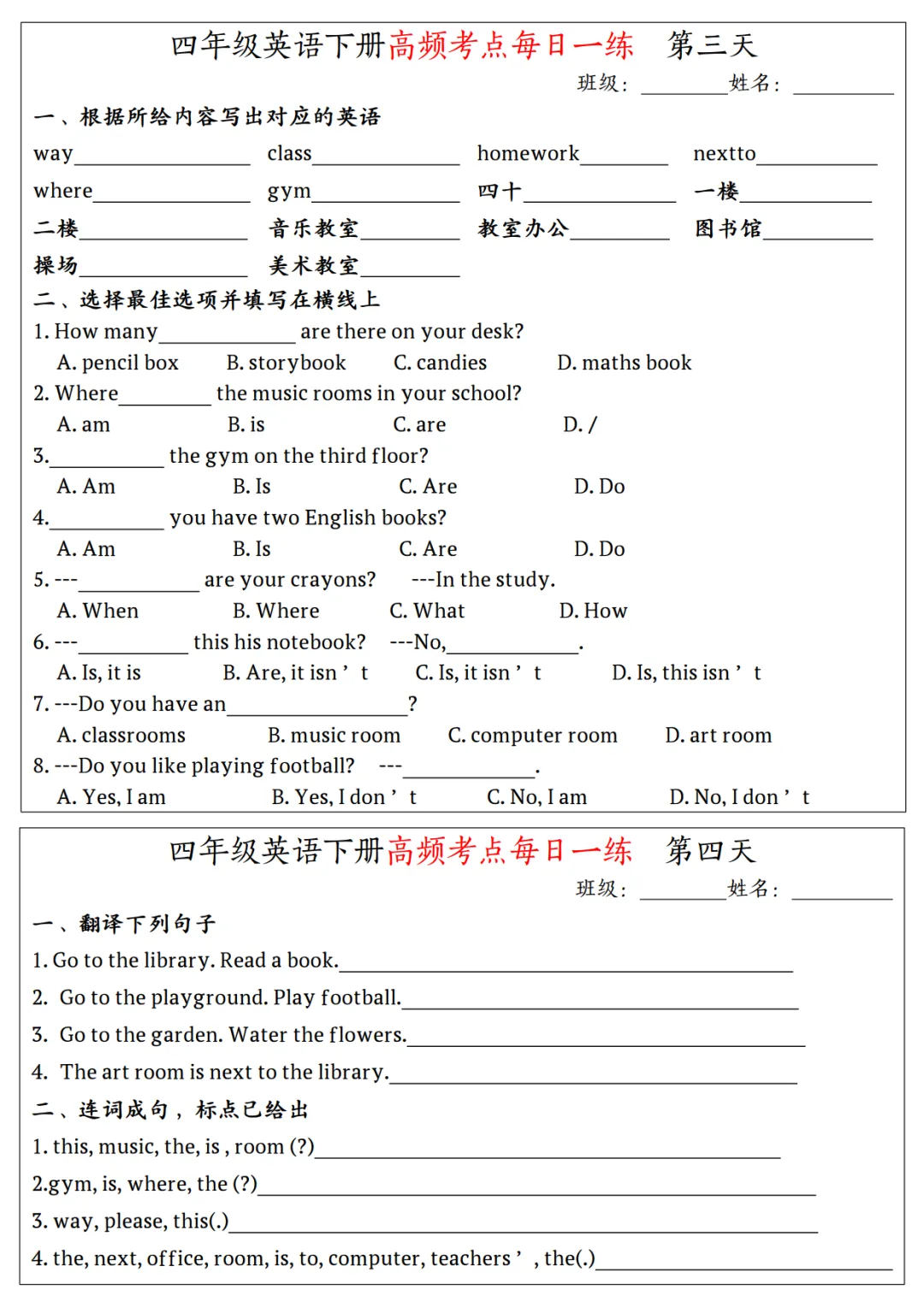 四年级有15天的练习内容