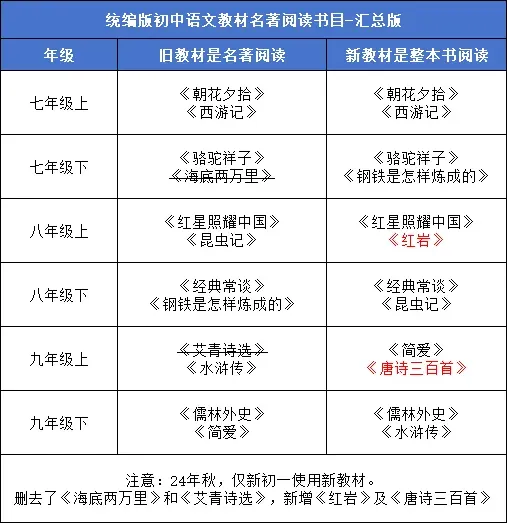初中三年必读12本名著又有新变化