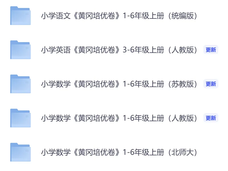 >【小学资源】小学语/数/英《黄冈培优卷》1-6年级上册(周练+月考+期中期末+专题试卷(含答案)