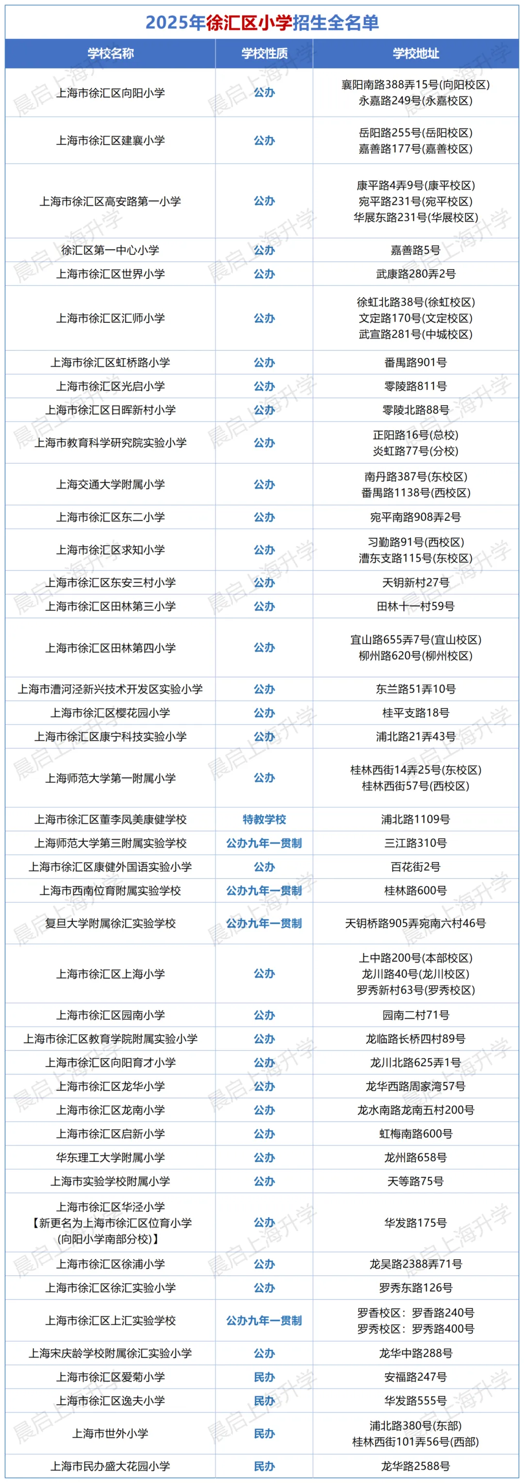 在文章末尾,冯老师附上徐汇区小学全名单: