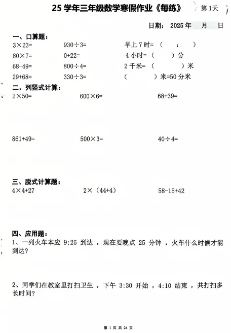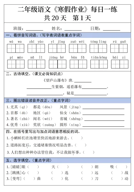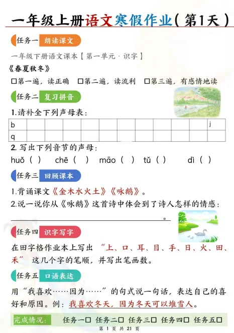 《寒假作业每日打卡》1-6年级(语文 数学)