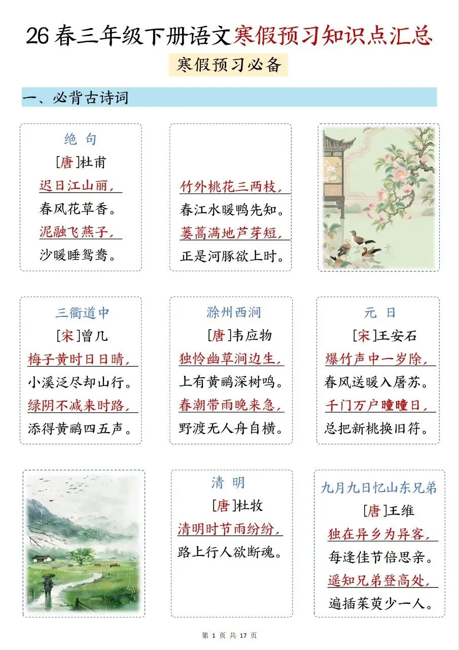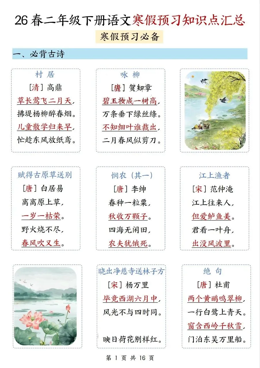 ✅✅26春1-6年级下册语文寒假预习知识点汇总