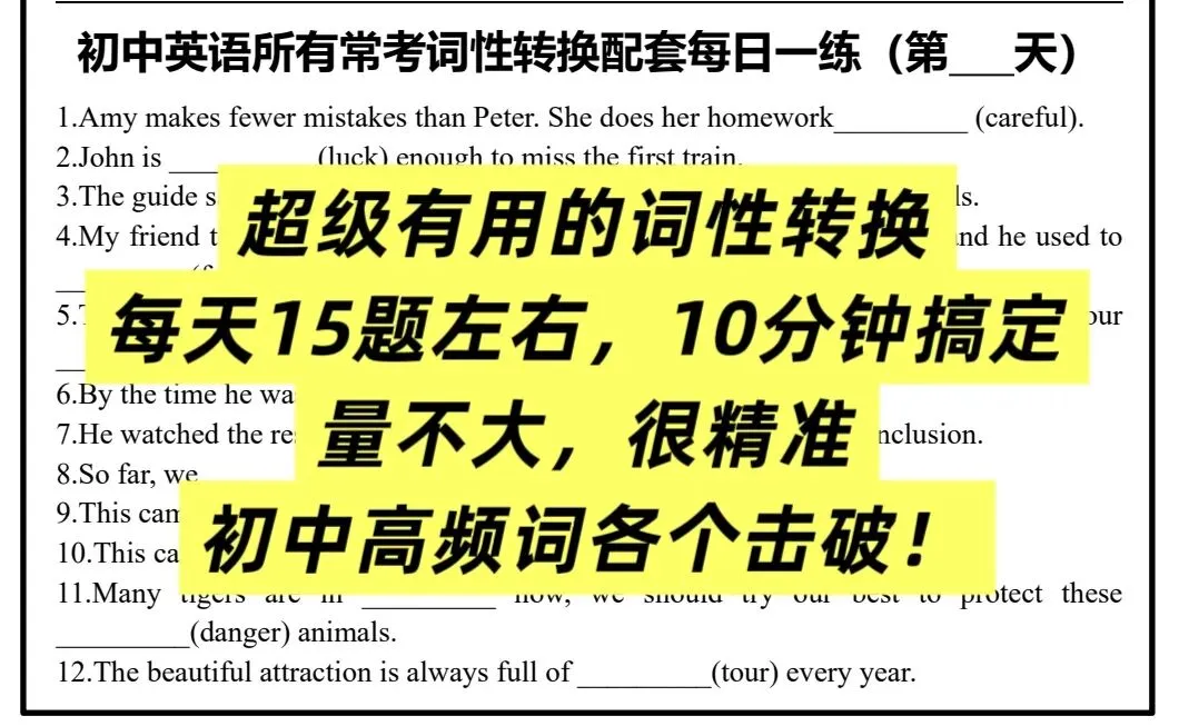 昨天分享了《寒假每天15道词性转换练习,覆盖初中99%高频考点!这个免费好资源太赞了!》被大家赞爆了!