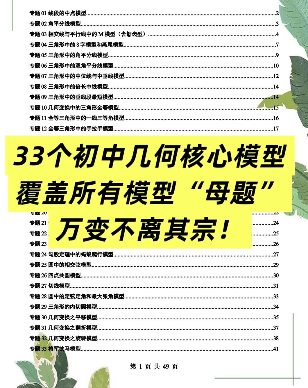 好在,手手君今天要分享给大家的这份《初中数学33个核心几何模型》,简直是初中生的“几何通关秘籍”!📚✨