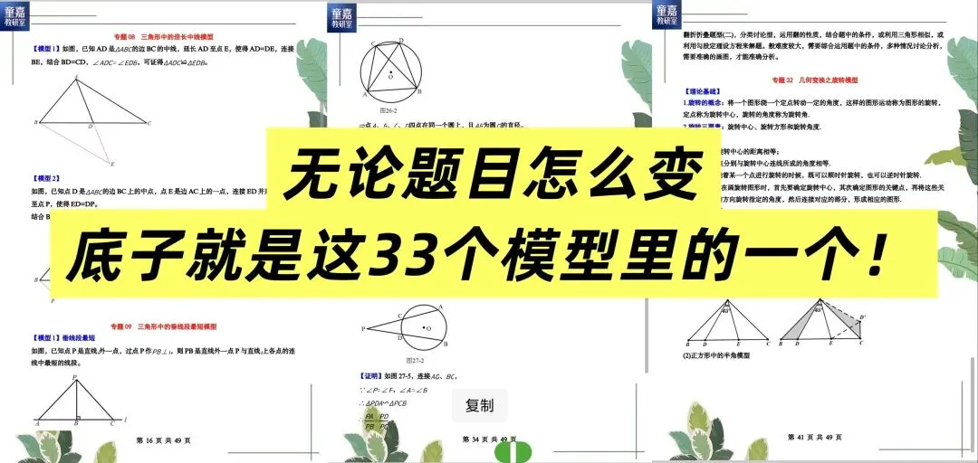 好在,手手君今天要分享给大家的这份《初中数学33个核心几何模型》,简直是初中生的“几何通关秘籍”!📚✨