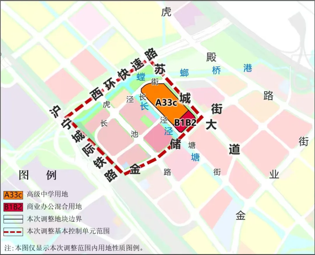 根据《苏州市金阊新城控制性详细规划05基本控制单元调整》批后公示,优化教育设施布局,将初级中学用地调整为高级中学用地,位于苏城大道西、金储街北。