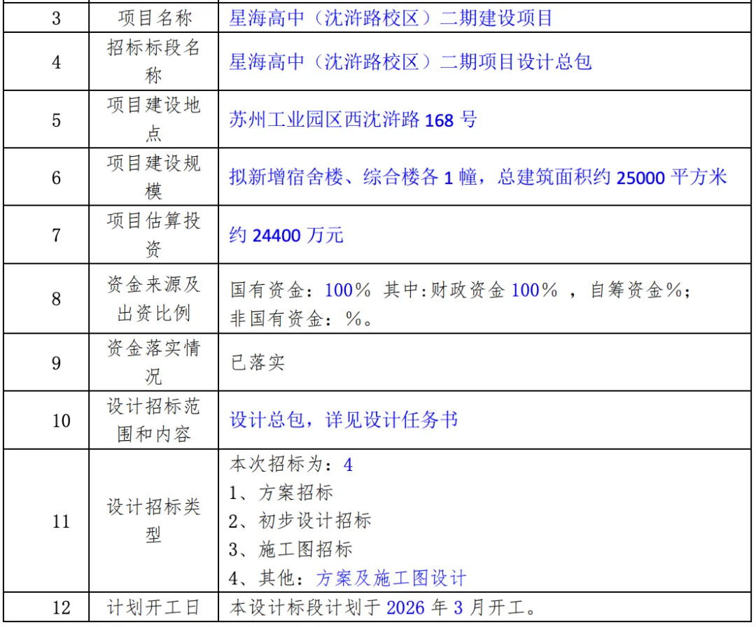 根据此前招标方案,项目建设包含教学楼、行政综合楼、风雨操场、食堂、宿舍、运动场和市政景观工程等,地块面积约为6.93万平米,总建筑面积约11万平米,最大单体建筑面积不低于2万平米,最大建筑高度不超过50米,学校建设面积91625.42平,地上13层,地下1层。
