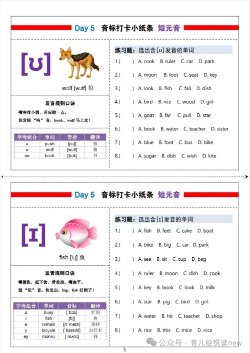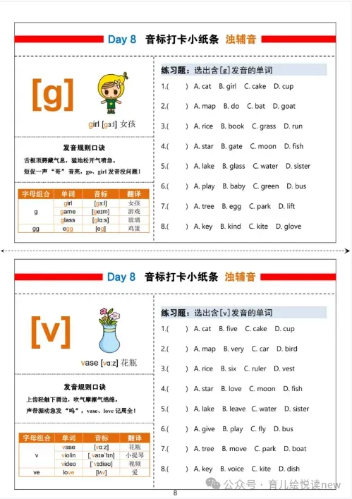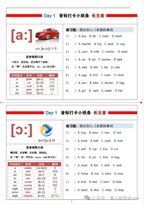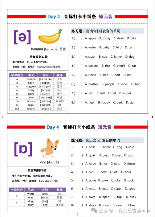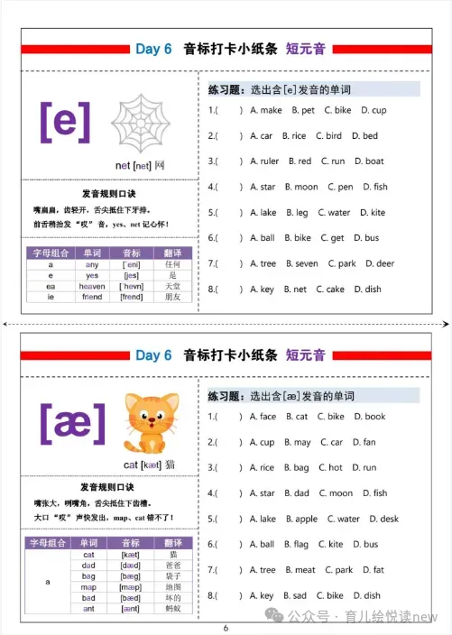 【英语资源】小学英语48国际音标每日打卡彩色小纸条,电子版可打印!