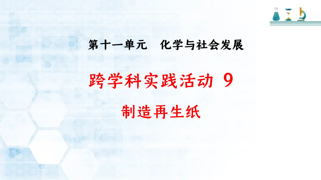 >F470 跨学科项目式学习 优质课资源 初中化学 第十一单元 化学与社会发展《跨学科实践活动9 制造再生纸》课件PPT+教学设计Word