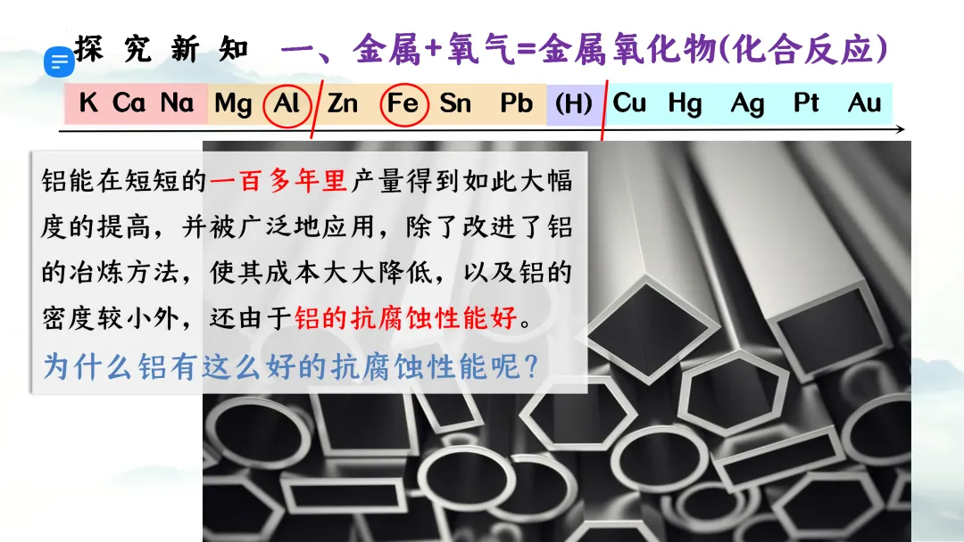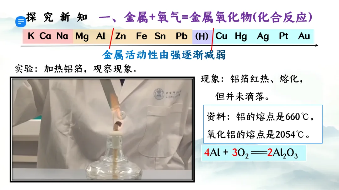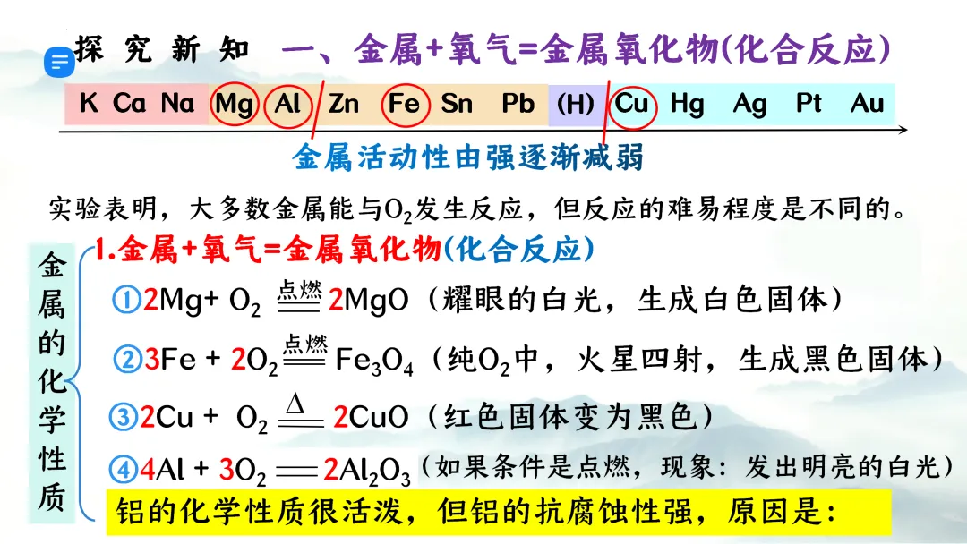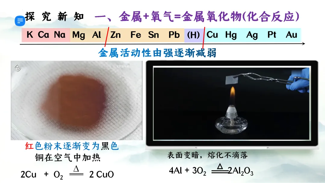 >F473优质课资源 初中化学 第八单元 金属和金属材料《课题2 金属的化学性质 第1课时 金属与氧气、稀盐酸、稀硫酸反应》课件PPT+教学设计