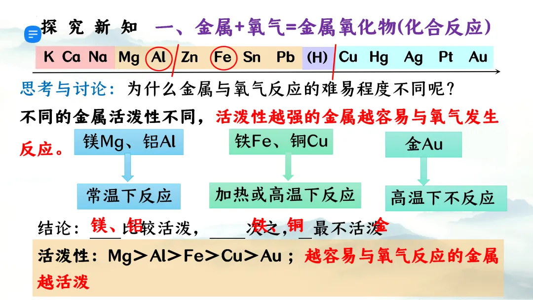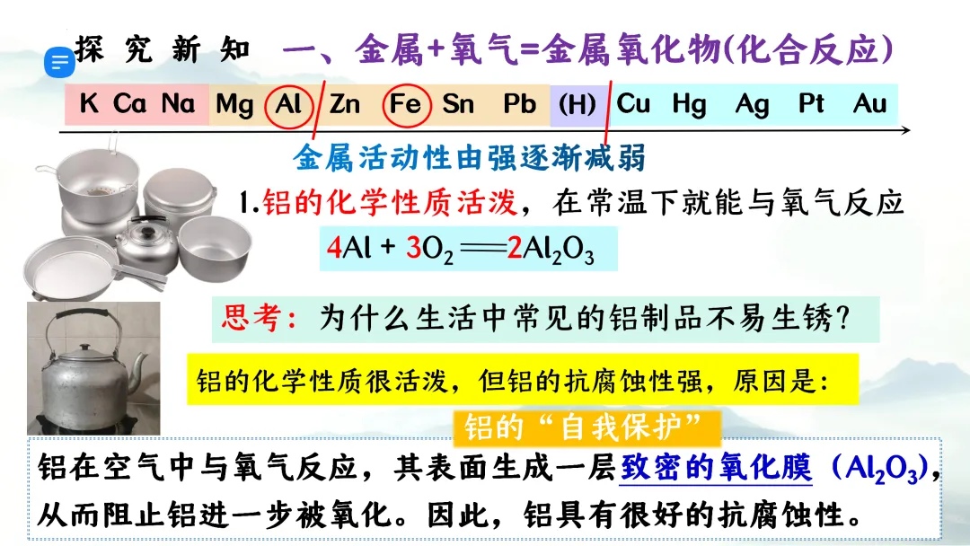 F473优质课资源 初中化学 第八单元 金属和金属材料《课题2 金属的化学性质 第1课时 金属与氧气、稀盐酸、稀硫酸反应》课件PPT+教学设计