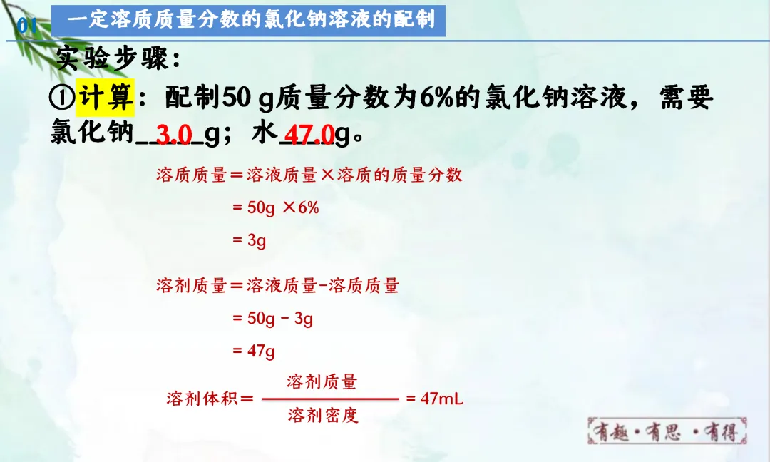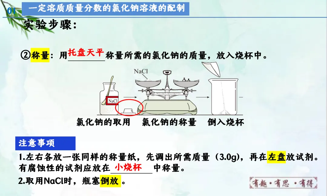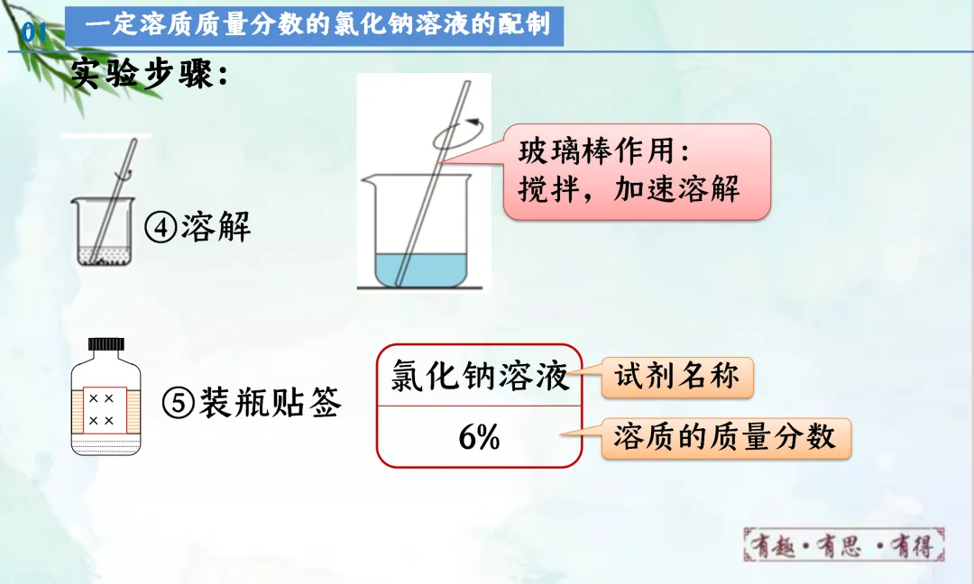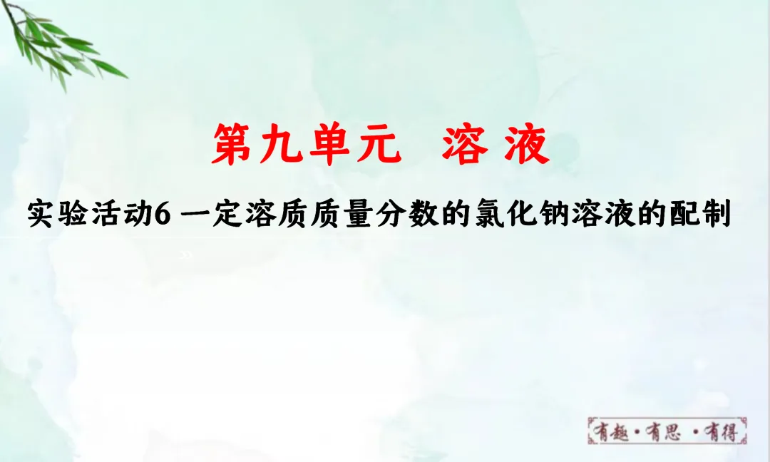 >F466 精品优质课资源 初中化学 第九单元 溶 液《实验活动6 一定溶质质量分数的氯化钠溶液的配制》课件PPT+教学设计Word