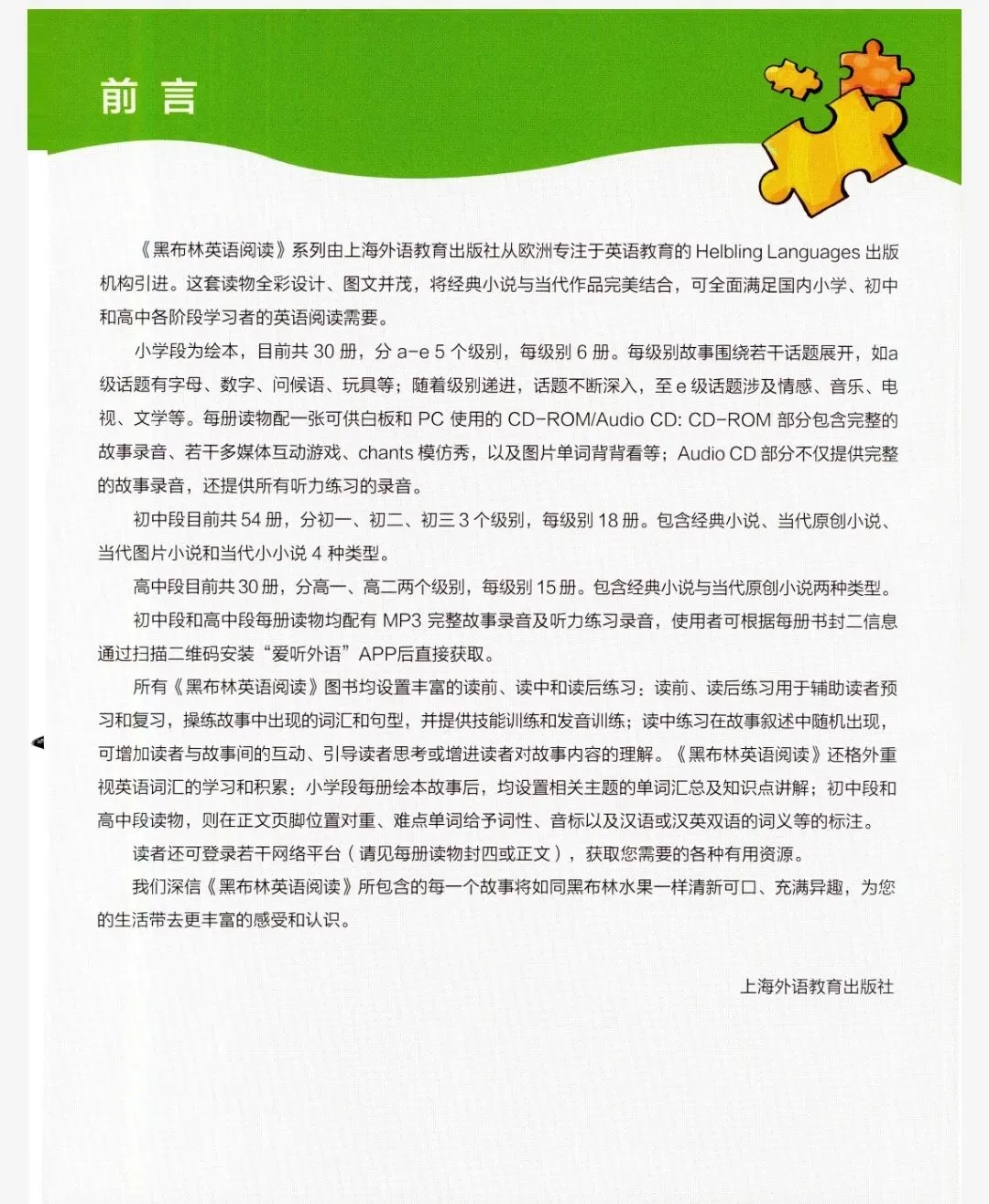 黑布林英语分级读物是很多外国语名校必读书,因制作精良、内容丰富而受到广大中小学生、家长和老师们的青睐,享誉全国基础外语教育界,经教育部组织专家评审,被列入全国中小学图书馆推荐图书。