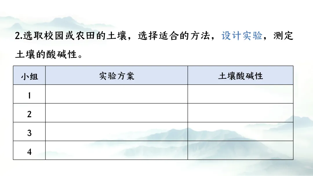 F501 跨学科项目式 优质课资源 初中化学 第十单元 常见的酸、碱、盐《跨学科实践活动土壤酸碱性对植物生长的影响》课件PPT+教学设计Word