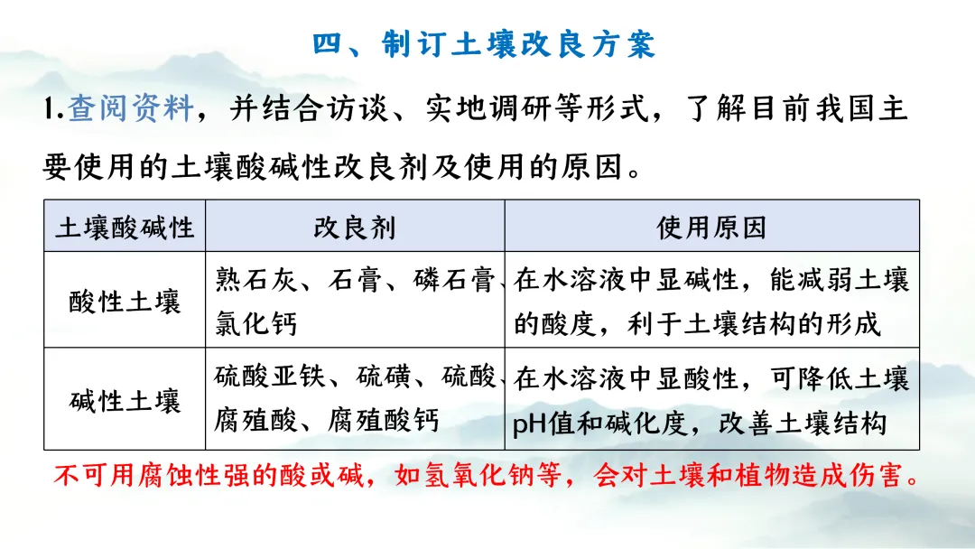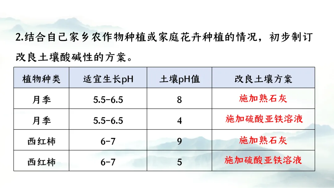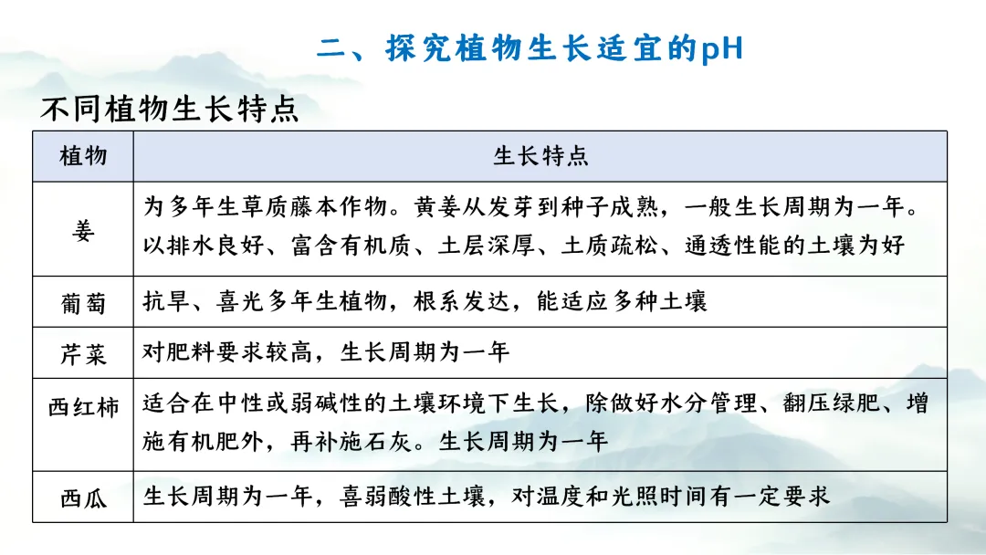 >F501 跨学科项目式 优质课资源 初中化学 第十单元 常见的酸、碱、盐《跨学科实践活动土壤酸碱性对植物生长的影响》课件PPT+教学设计Word
