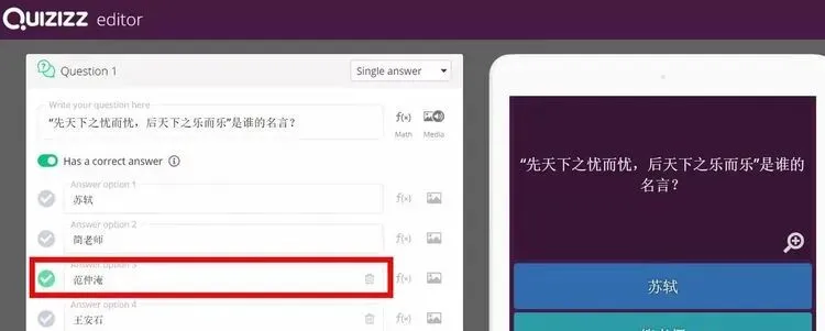 5. 课堂测评:Quizizz发后测题,对比前测数据,教学效果即时可见!