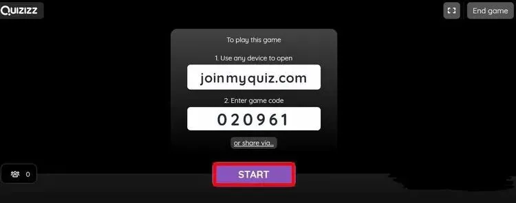 底下的数字则为游戏码,将数字码告诉学生,学生们进入游戏后,老师们就可以点击“Start”开始游戏了。