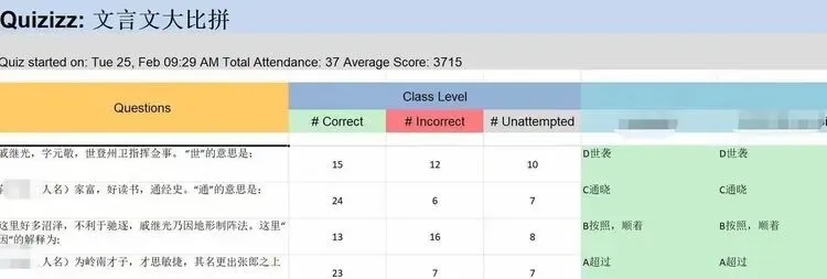 当然,一场比拼结束后,你可以清楚地看到同学们的答题情况。