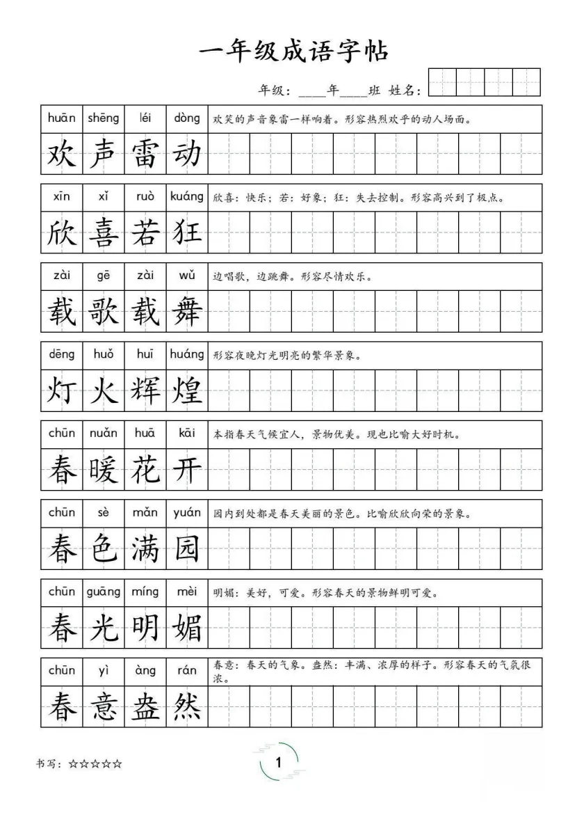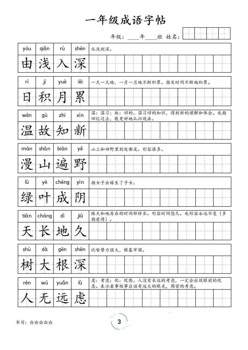 「1-6年级语文《成语字贴》」