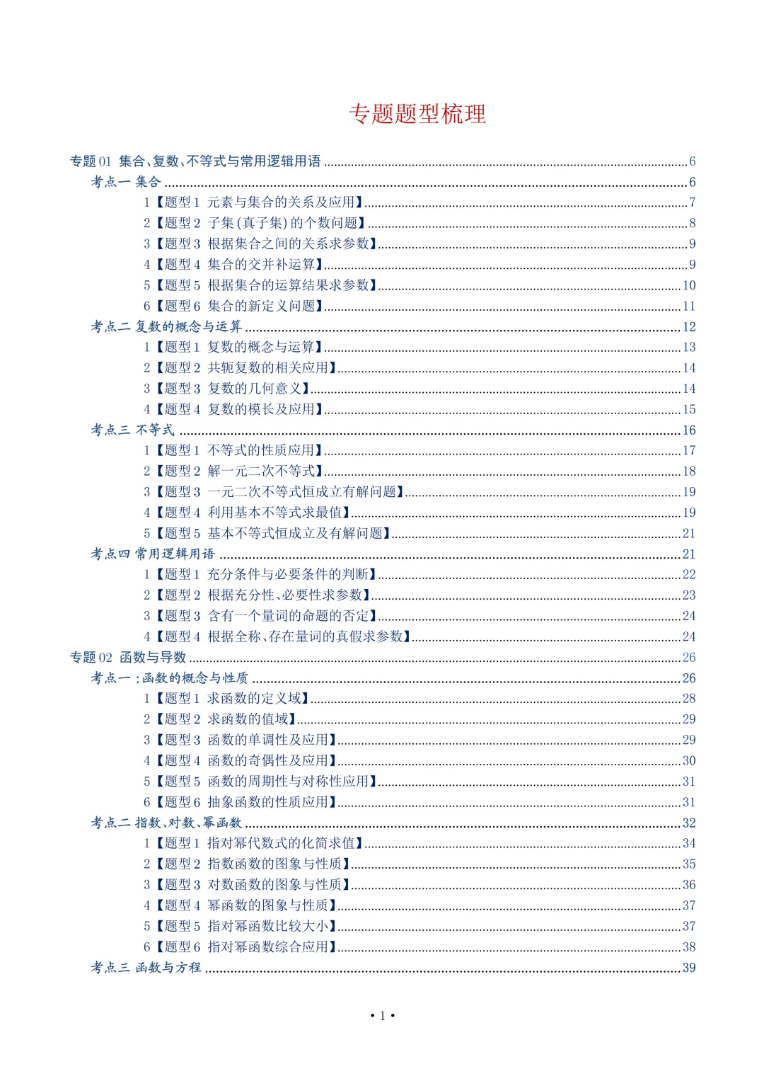 2025年高考数学重难点题型+模拟精练+思维导图+知识清单+核心素养分析+方法归纳