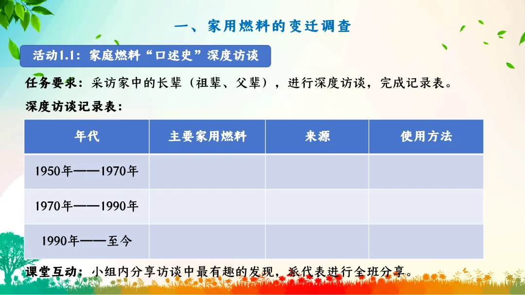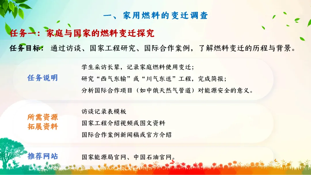 >F508 跨学科项目式学习 优质课资源 初中化学 《调查家用燃料的变迁与合理使用》 课件PPT+教学设计Word