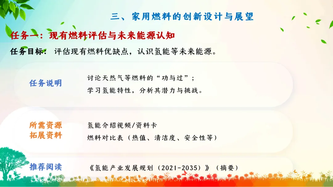 F508 跨学科项目式学习 优质课资源 初中化学 《调查家用燃料的变迁与合理使用》 课件PPT+教学设计Word