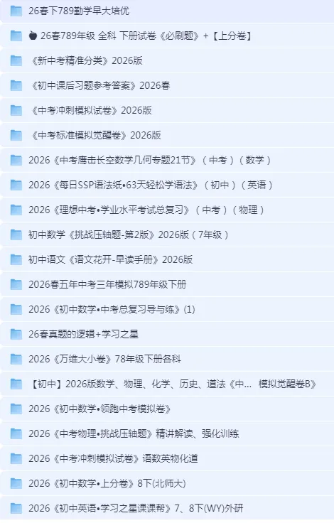 我用夸克网盘给你分享了「2026版初中【5星学霸】系列789合集」,点击链接或复制整段内容,打开「夸克APP」即可获取。