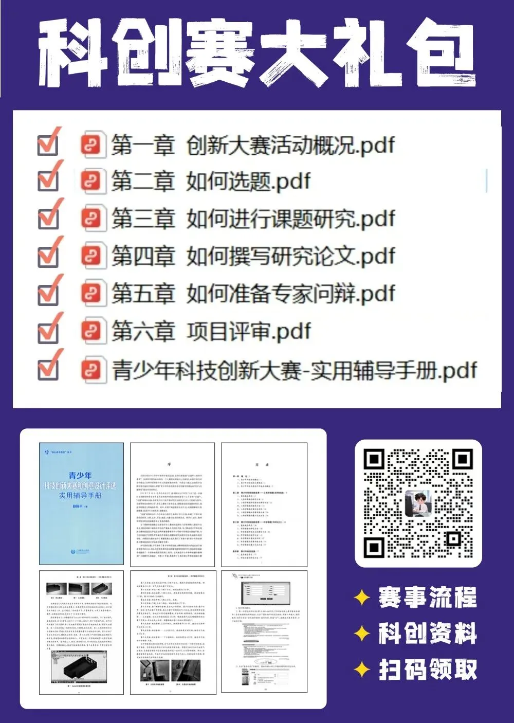 在这里,我们也为大家准备了科创赛辅导大礼包,里面内容包含选题、课题撰写、答辩准备、项目评审申报等内容,超级实用!需要的家长可以添加小科微信(V:kexue11221)免费领取~