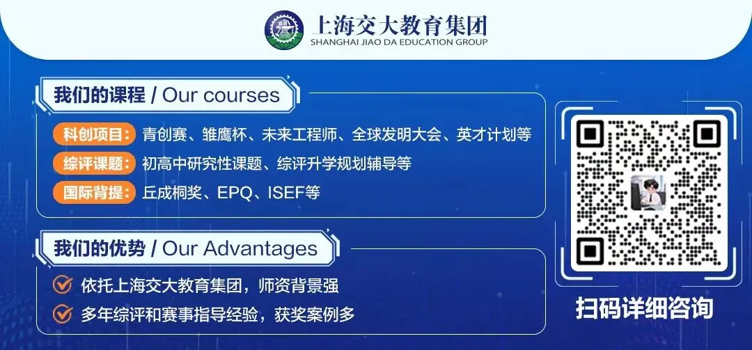 在这里推荐大家可以加入一下科创群,群里有上海科创赛事榜单和相关赛事详情,群内还会更新赛事通知,让孩子不再错过参赛!有需要的家长可以添加微信(V:kexue11221)进群免费领取~