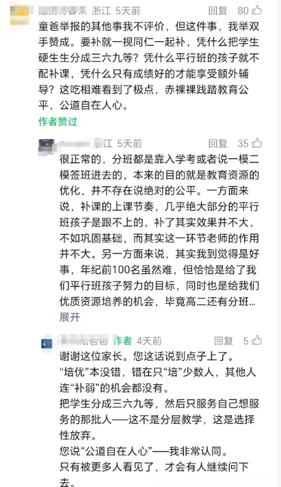 一中普通班网上都说不好、说放羊,为什么普通班前5名照样能上浙大,前10名照样能985呢,同样在一个班,你的孩子为什么去二本?初中同样在一个班,为什么有的孩子一中领军保送、有的孩子职高3+2?你不能因为没拿到期望的结果就说不公平,这本身就是巨婴心态,地球不会绕着你转,择校择班都得考虑清楚是否适合你家孩子。