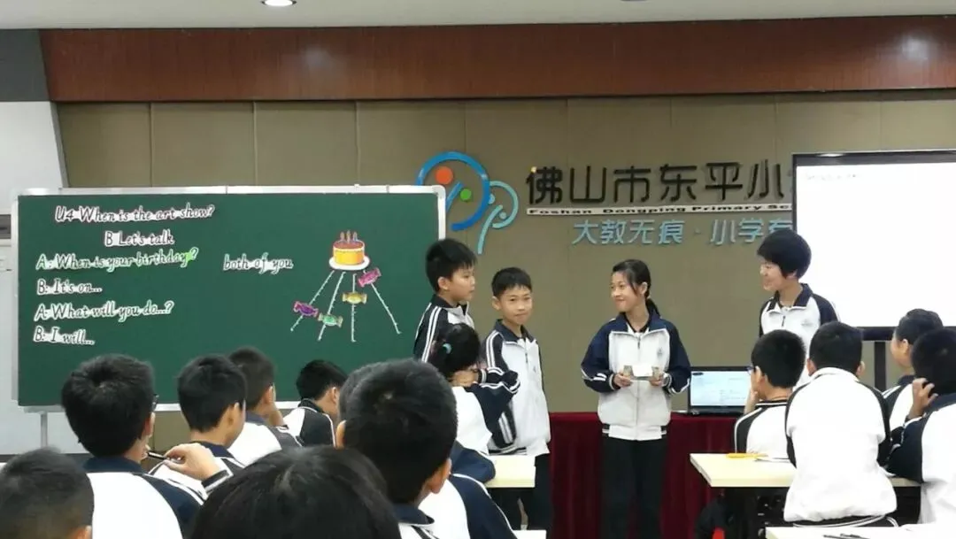 这一节课呈现出来的,是整个备课团队努力的成果。其中有很多让我惊喜的闪光点,比如在续写故事 If you were Mike, 学生淡定地告诉我 Mike is my good friend,在这样的课堂氛围下,孩子们迸发了思维的火花,展现给大家流利、充实的对话。在最后的母亲节主题编演故事中,孩子们在小组合作的愉快情绪带动下,发散思维,融合了很多句型,包括以前所学的外貌、食物、天气等相关词,还有孩子幽默地编出 “My mum is fat so I can’t buy a cake for her.” 这样的句子,这时我再渗透情感教育,让孩子潜移默化地感悟母爱的伟大,这也是我们东平小学“大教无痕,小学有成”的教育理念的体现。