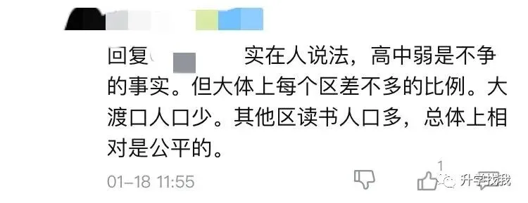 但是也有人提出,虽然高中学校少,但人口也少,综合算下来升学比例,和其他区差不多。
