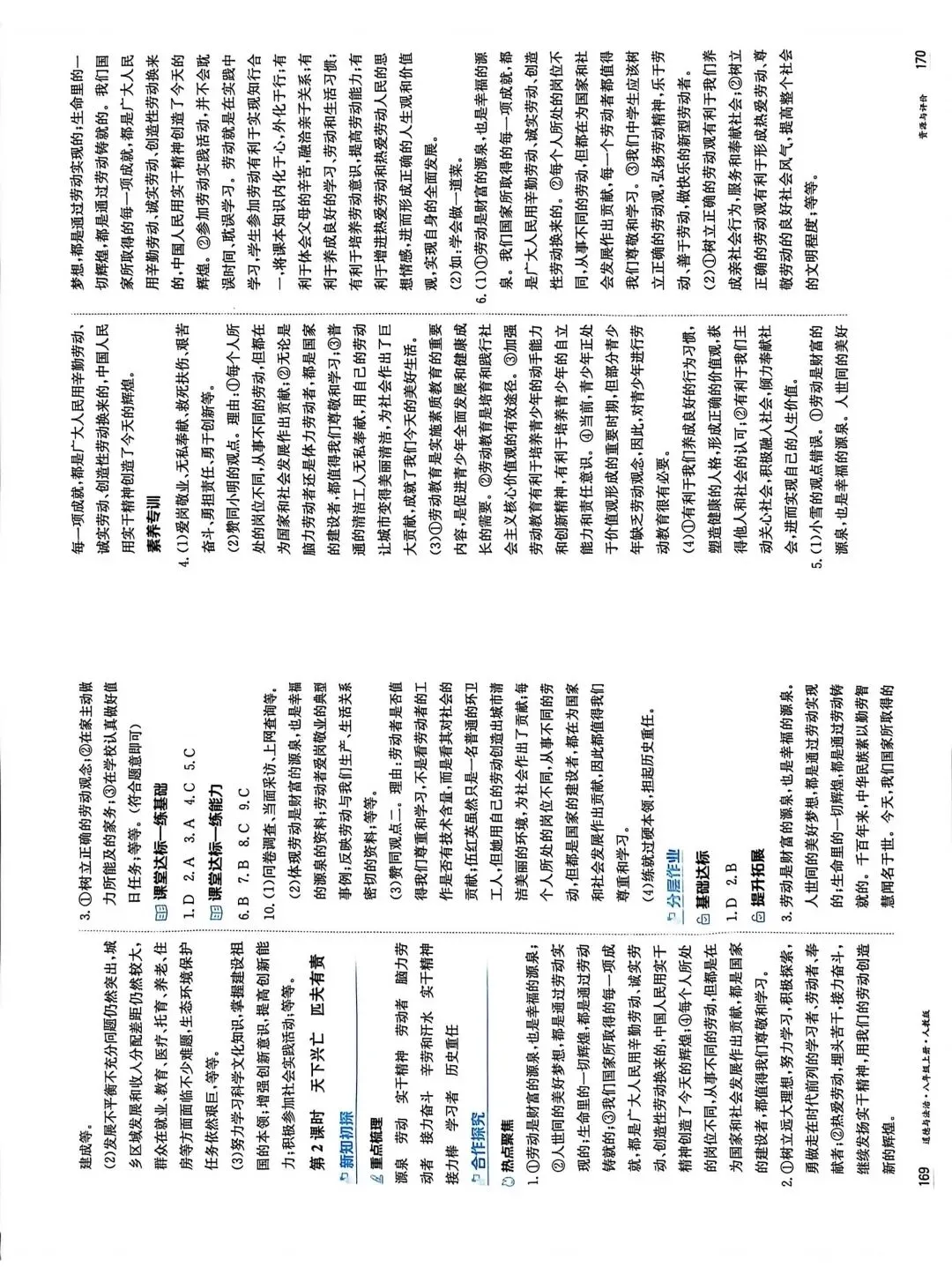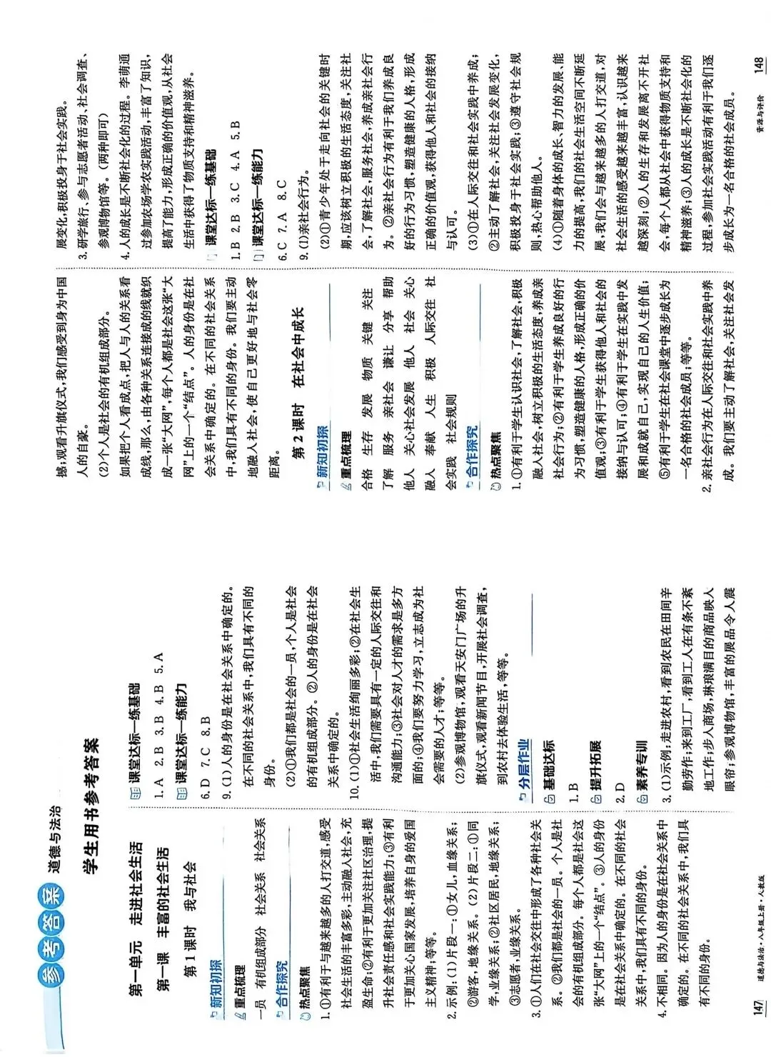 >黑龙江初中八上道德与法治资源与评价答案