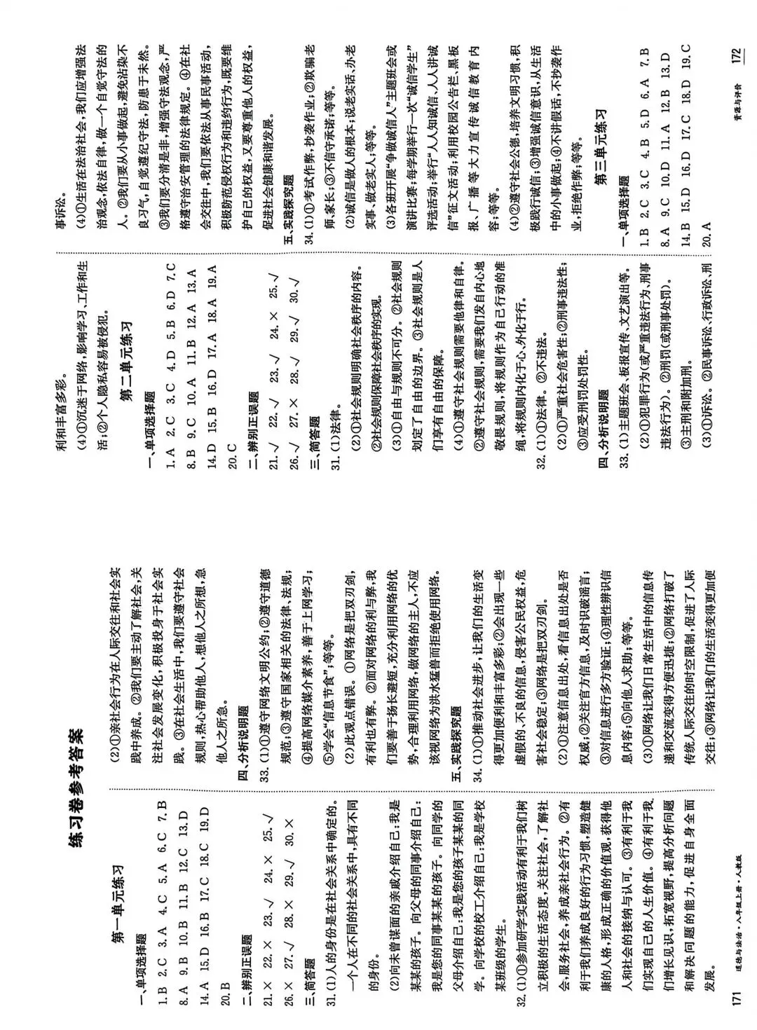 黑龙江初中八上道德与法治资源与评价答案