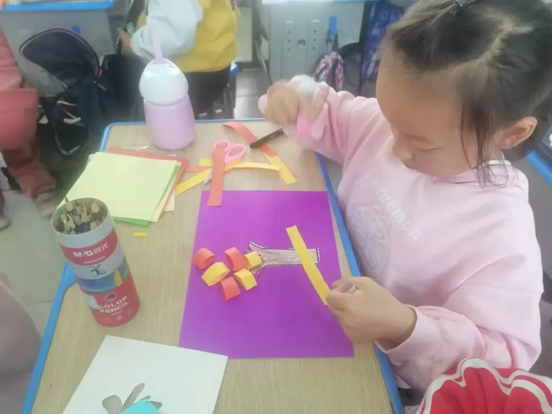 不同的区域,不同的教室,不同的学生,依靠专递课堂紧密相约相同的课堂,共享知识的盛宴。下午的手工课上,执教教师邢少琴精准的把握手工课教学的要求,她循循善诱,通过秋天各种树叶的颜色导入课题,激发了两校学生动手创作的兴趣;邢老师一边讲解一边动手操作,一招一式都指导到位。讲台下,一双双小手按捺不住也跟随老师一会儿画,一会儿剪。透过屏幕,砖洪的小朋友也学得有模有样,一张张天真无邪的脸上洋溢着获得新知的喜悦。在老师的帮助下,两边的学生顺利地完成了一棵让人满意的秋天的树。