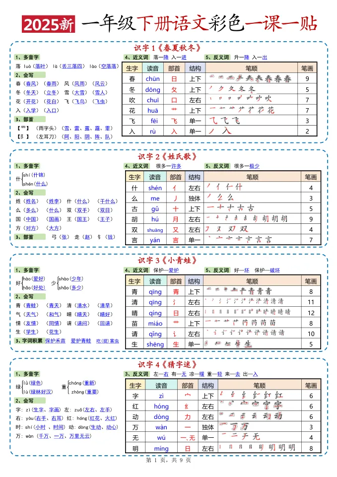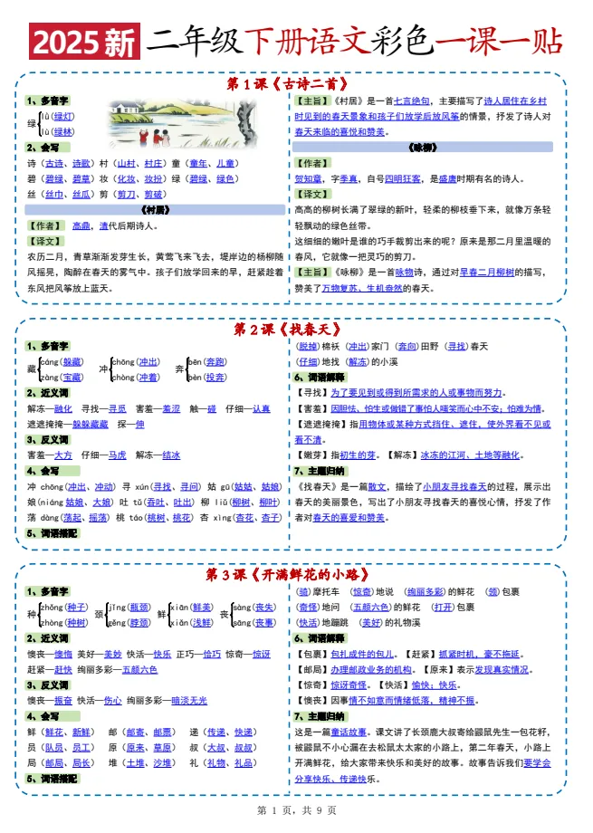 >【小学资源】小学语文《课课贴 彩色版》1-6年级下册