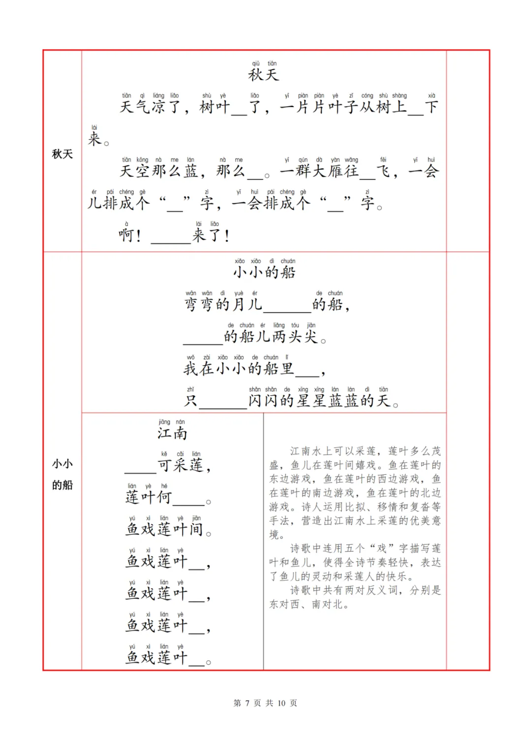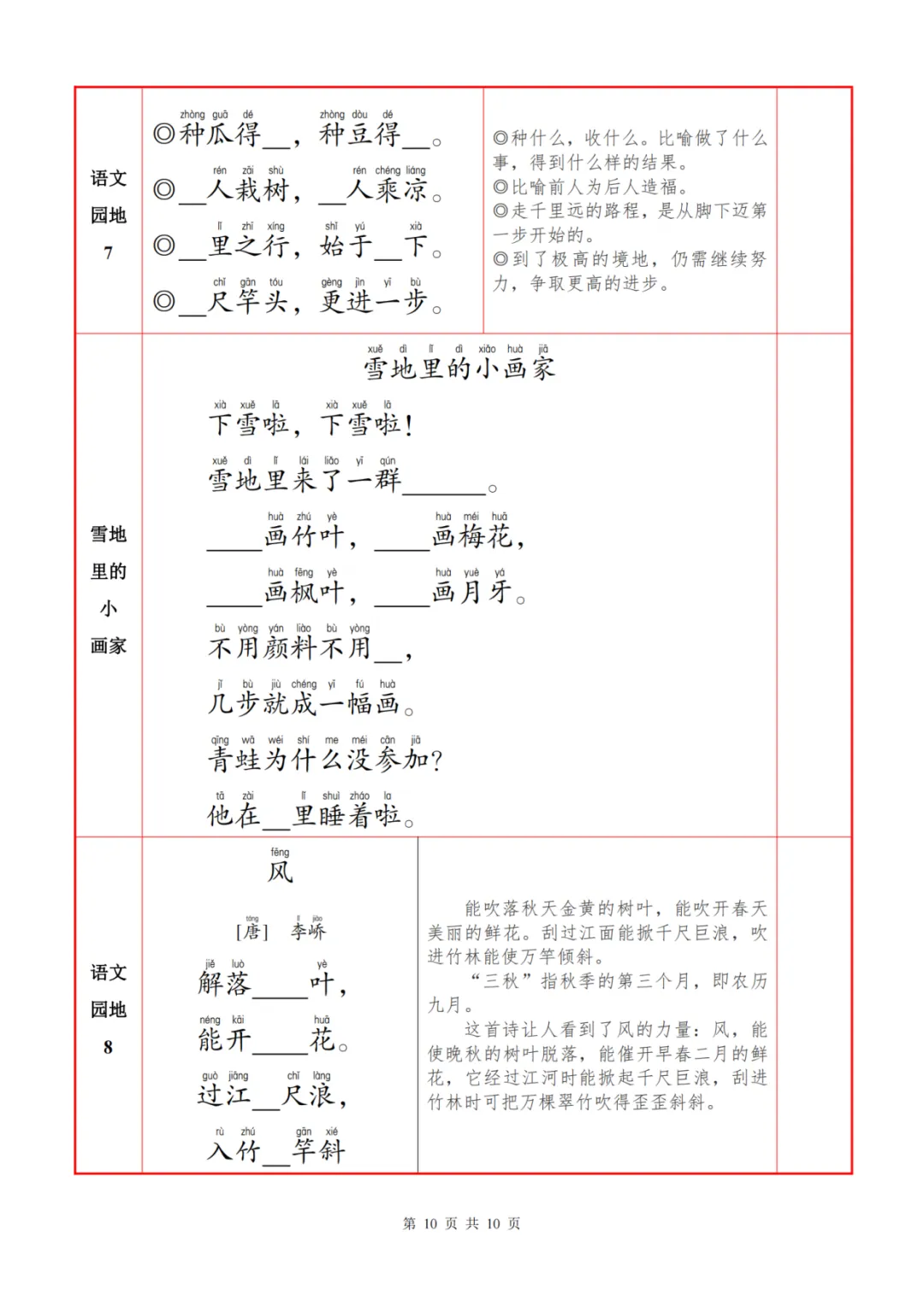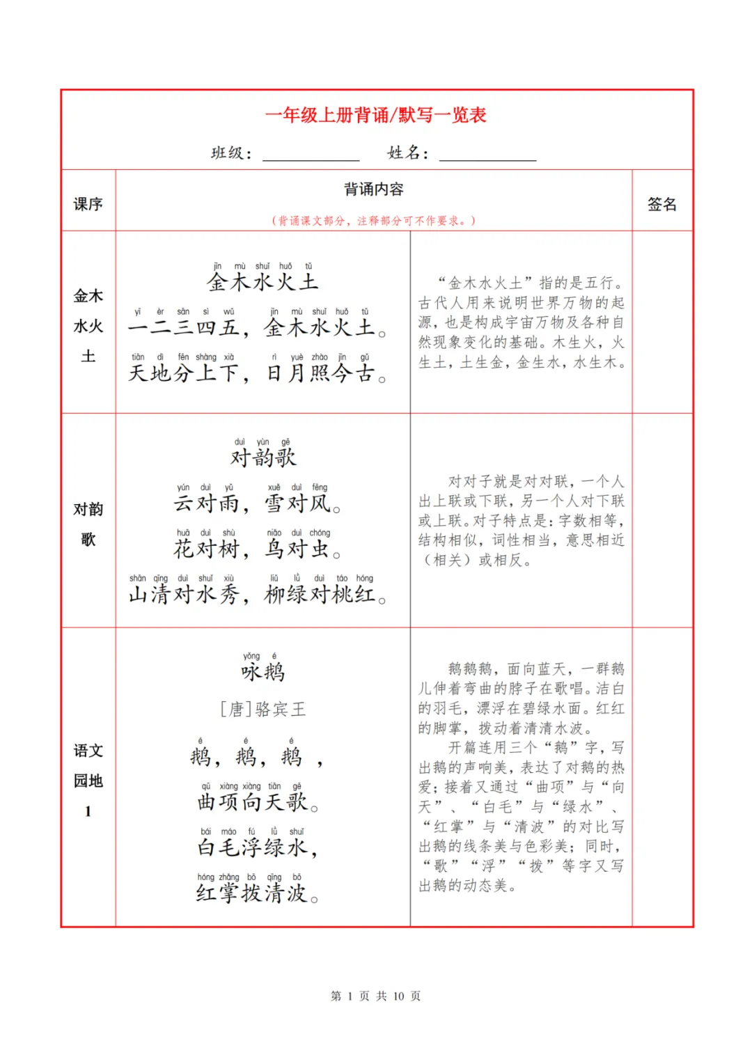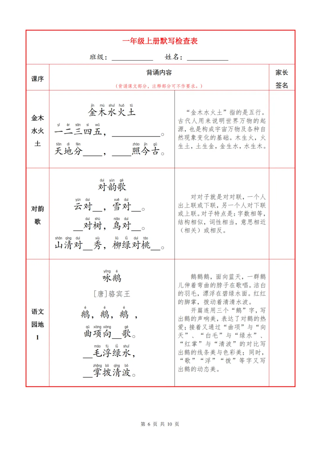 语文背诵默写自查表