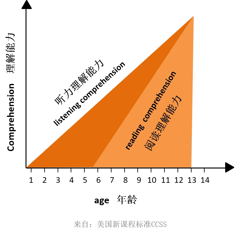 从上图可以看出,在英语学习中,孩子阅读理解能力的上限是听力理解能力。