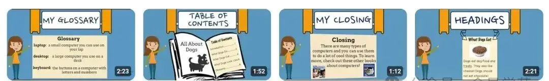 10种类别代表了不同类型的写作视频,教授孩子们特定的写作技能。