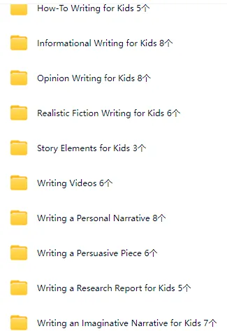 今天带来一套《Writing For Kids》写作教学视频,这套视频是一个美国小学老师制作的写作教学短片,每个视频2分钟,含开头、结尾、修改、计划、组织图、构思、选标题等10个类别共66节,直接上写作思路和技巧,实用性很强!