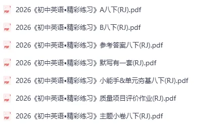 本篇分享的是2026《初中英语•精彩练习》全套 8下(RJ),持续更新!!获取链接请下拉至文末 2026《初中英语•精彩练习》全套8下(RJ)是一套紧扣人教版教材、专为八年级下学期设计的同步练习册。