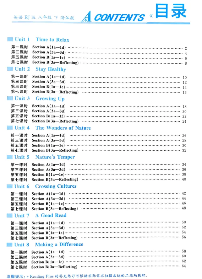 ● 题型丰富,贴合考情:在巩固课内知识的同时,融入贴合中考趋势的拓展阅读与语法填空,选材新颖,旨在全面提升学生的听说读写综合运用能力。