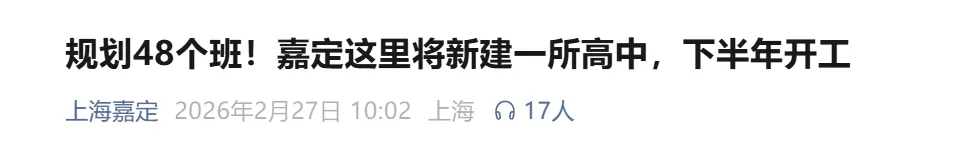 定了!上海嘉定官方定调,本区又将新建一所高中,今年下半年开工!华东师范大学第五附属学校在、即将创办高中。
