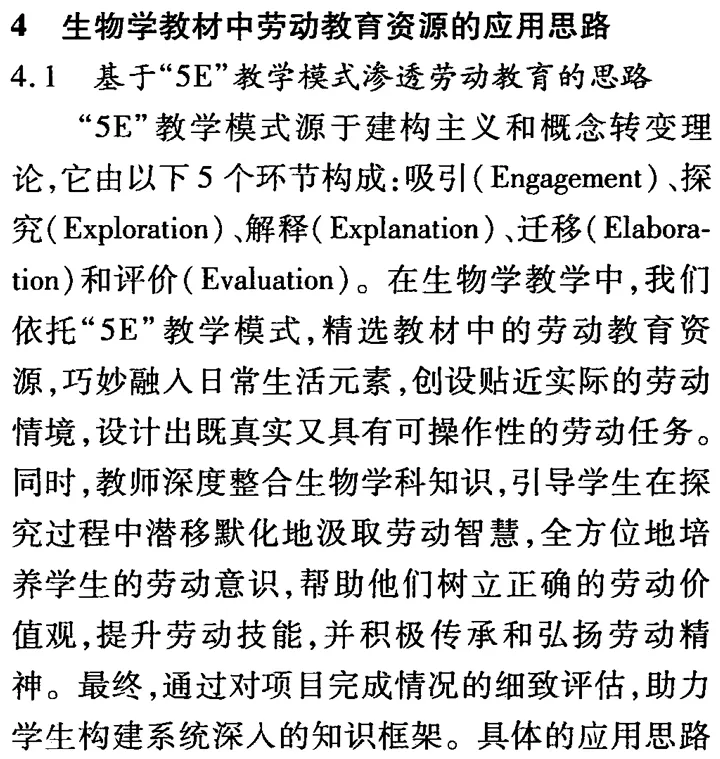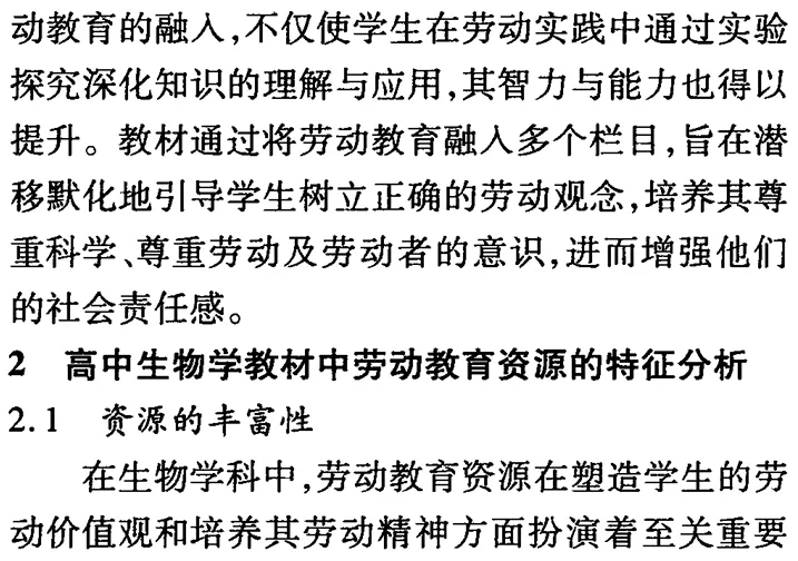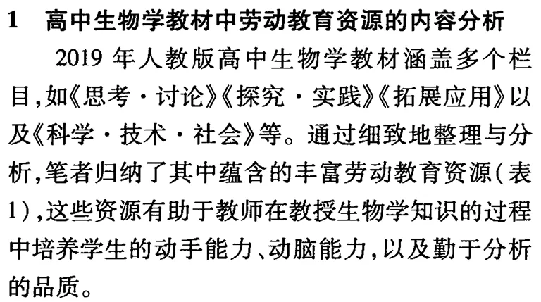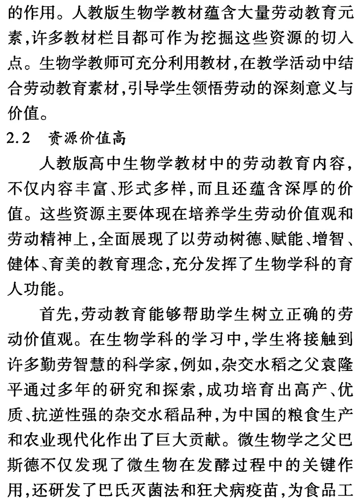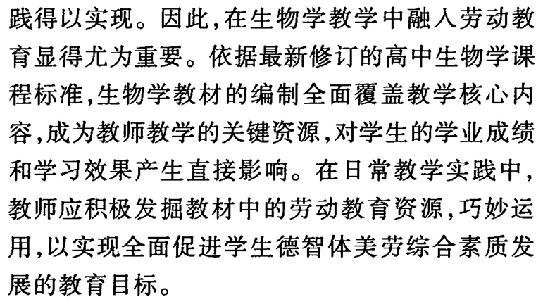 高中生物学教材中劳动教育资源的挖掘与应用