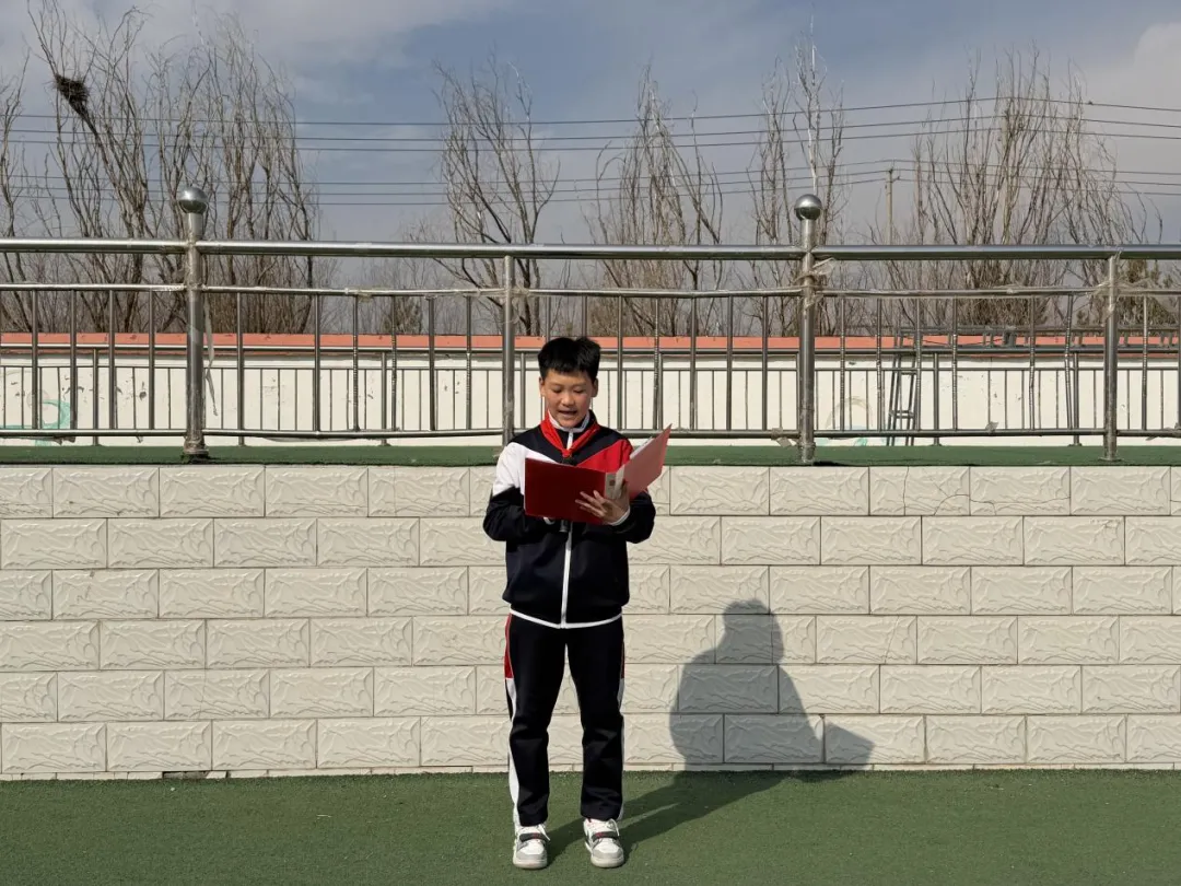 六年级二班杨忠翰同学带来国旗下讲话,他号召同学们从身边小事做起,争当节水小卫士,用实际行动守护生命之源。