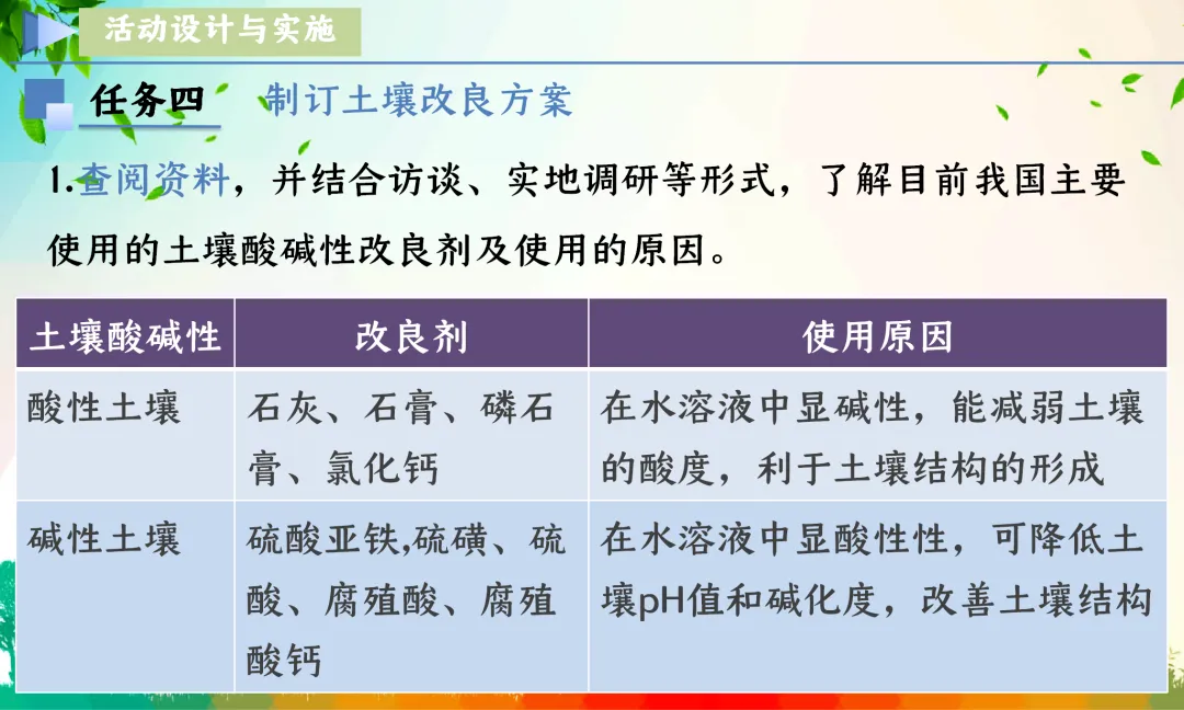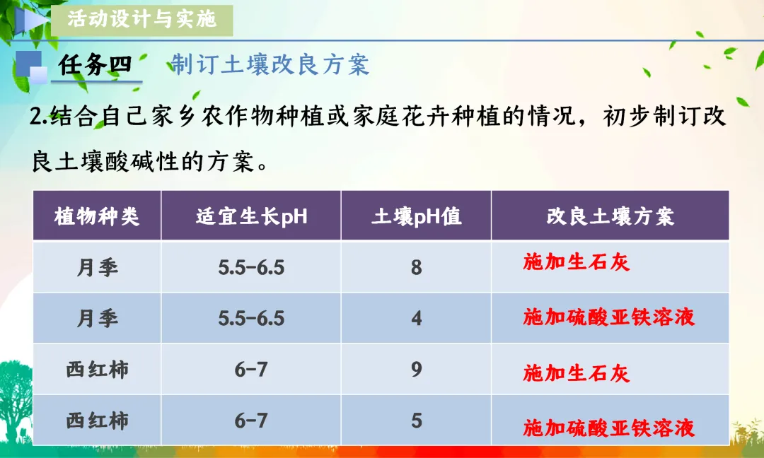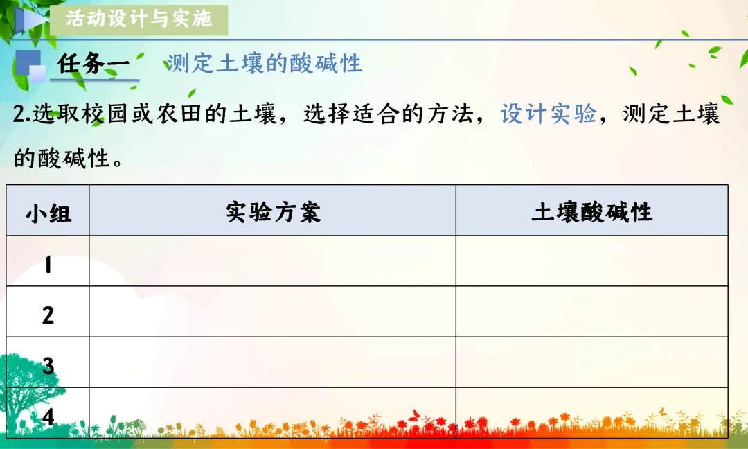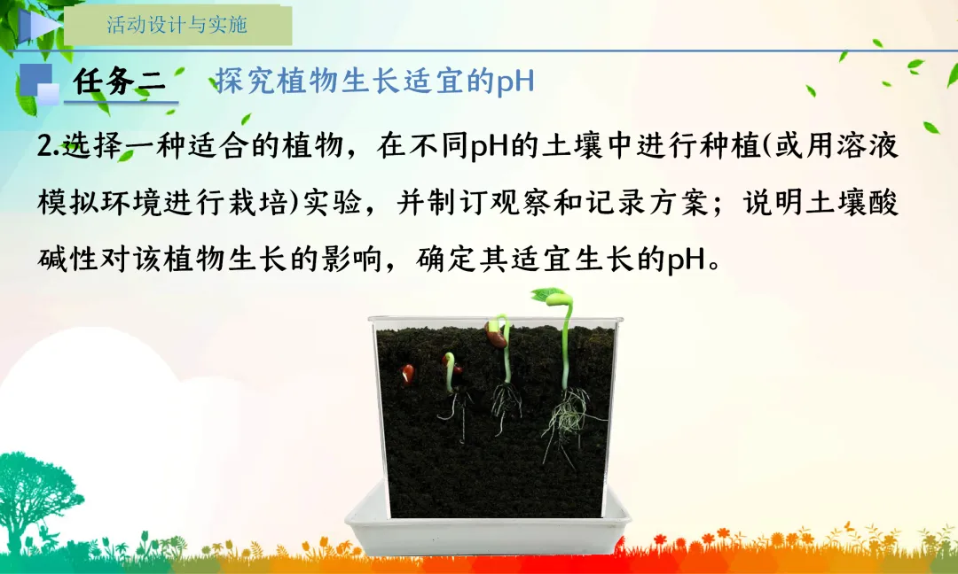 F740跨学科项目式学习 优质课资源 初中化学 第十单元 常见的酸碱盐《跨学科实践活动 探究土壤酸碱性对植物生长的影响》课件PPT+教学设计