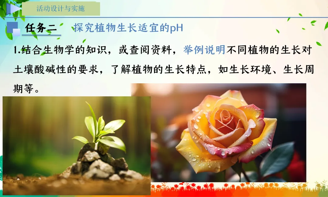 >F740跨学科项目式学习 优质课资源 初中化学 第十单元 常见的酸碱盐《跨学科实践活动 探究土壤酸碱性对植物生长的影响》课件PPT+教学设计