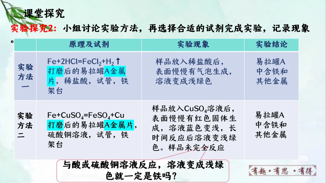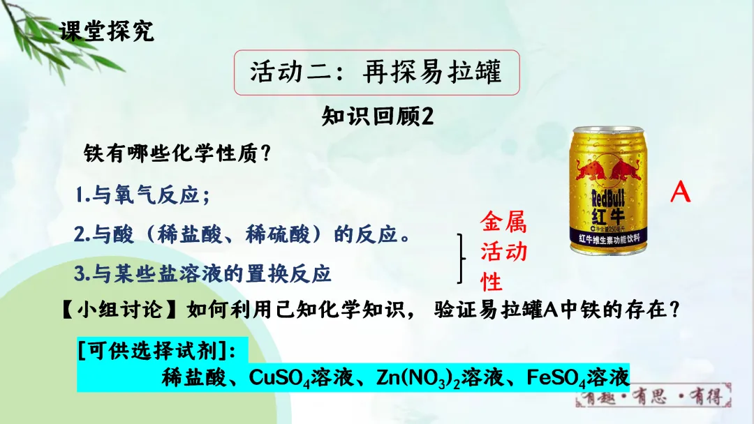 >F751 跨学科项目式学习 优质课资源 初中化学 第八单元 金属《易拉罐的科学探究---金属专题复习课》课件PPT+教学设计Word